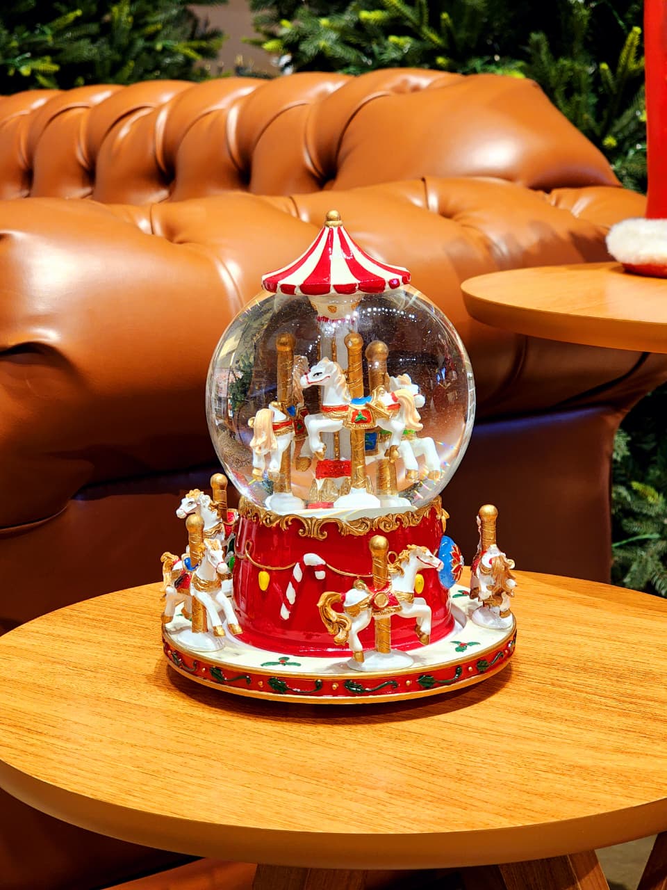 CENÁRIO NO GLOBO COM ÁGUA CARROSSEL COM MOVIMENTO, A PEÇA TEM UMA PINTURA BEM ESPECIAL E DETALHADA ESSE ACABAMENTO BRILHOSO DEIXA ELA MUITO LINDA.